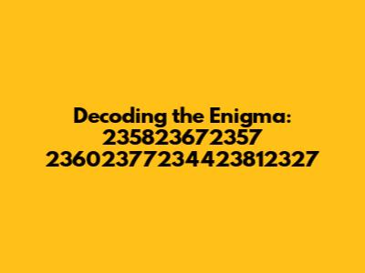 When trying to understand a number sequence like 235823672357 23602377234423812327, the first step is to consider its possible origins. These sequences don't just pop out of nowhere; they are typically generated within specific systems or processes. Let's explore some common scenarios where such numbers might arise.